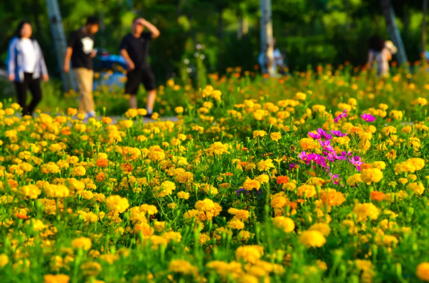 初秋时节,沣汇公园里的花海迎来最佳观赏期。在蓝天白云的映衬下,每一朵花都舒展着娇美的姿态,它们迎风摇曳、连片成景,成为城市里亮眼的秋日景致。